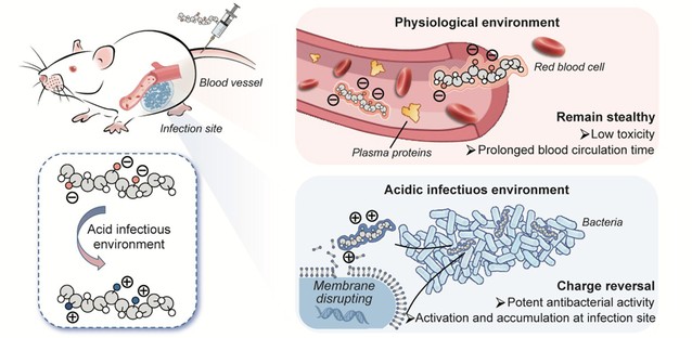 Professor Liu Runhui’s research group from the School of Materials Science and Engineering recently reported a novel strategy for designing host defense peptide-mimicking prodrugs activated specifically at infection sites. The developed antibacterial prodrugs effectively treat infections caused by drug-resistant Gram-negative bacteria. This research article, titled “A host defense peptide-mimicking prodrug activated by drug-resistant Gram-negative bacterial infections”, was published in the authoritative journal Science Translational Medicine and selected as the cover article for that issue (Sci. Transl. Med.2025, DOI:10.1126/scitranslmed.adl4870).
